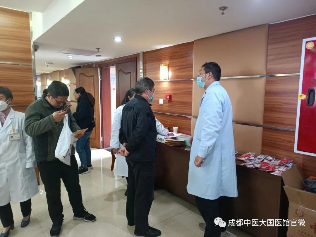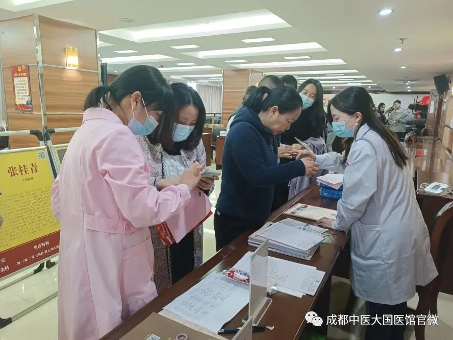 为倡导科学生活方式,丰富延伸中医药服务内涵,让特色中医药更好地服务人民,服务单位工作人员,国医馆协同成都市市场监督管理局举行以“春季送医送爱送健康”为主题的义诊活动。国医馆的各位中医专家深入单位,为单位的工作人员送去专业的健康指导。